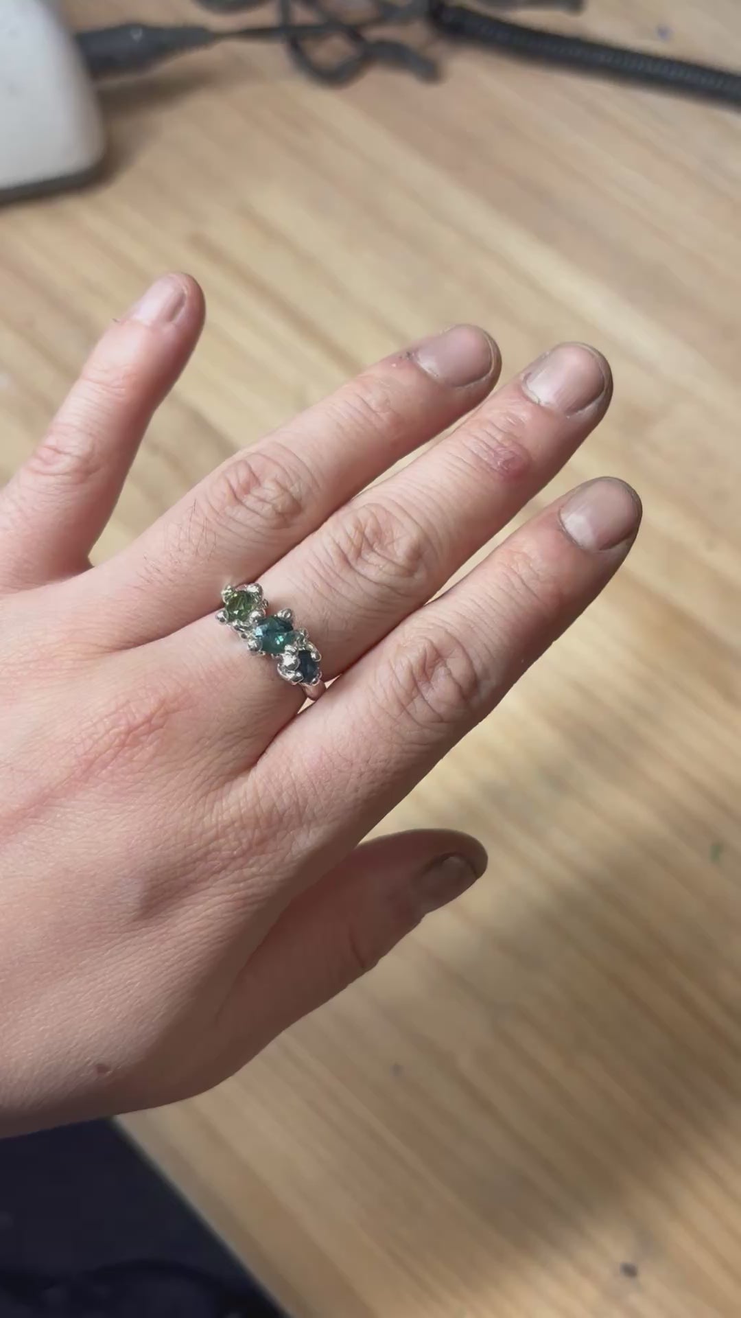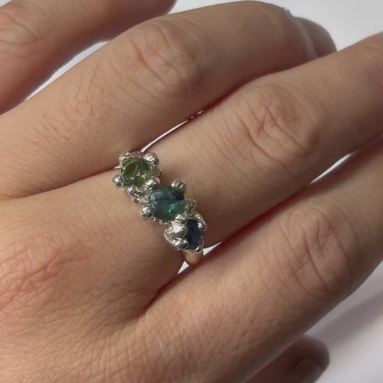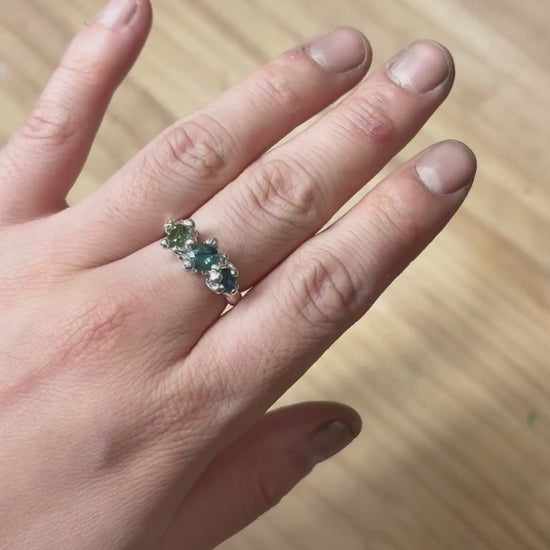 Inspired by the natural beauty of Australia, this ring features Australian sapphires in deep ocean blues and earthy green tones. Each stone reflects the colours of the landscape — from the vast sea to the native bushland.